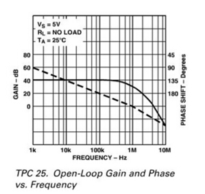 音叉液位開關(guān)模擬采樣回路采用的運(yùn)放型號(hào)為AD8544,下圖顯示了AD8544放大器的開環(huán)增益和相位響應(yīng)與頻率的關(guān)系。這是一款10MHz放大器,支持軌到軌輸出,并且只有4fA的偏置電流。主補(bǔ)償電路的-90°相位延遲從大約1KHz達(dá)-90°開始,在約10KHZ時(shí)達(dá)到-135°,但在1MHz以上將越過-235°。在實(shí)際應(yīng)用中,由于額外的增益級(jí)和輸出級(jí)電路,所有放大器除了基本的主補(bǔ)償延遲外,都還有高頻相位延遲。典型的額外相位延遲從大約GBF/10開始。