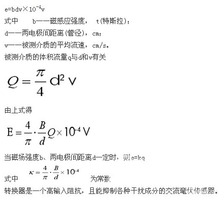 被測介質(zhì)垂直于磁力線方向流動(dòng),因而在與介質(zhì)流動(dòng)和磁力線方向都垂直的方向上產(chǎn)生一感應(yīng)電動(dòng)勢e。