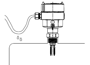 當(dāng)儀表安裝在戶外或有潮氣的環(huán)境中,如遇到下雨或村在冷凝現(xiàn)象時,雨水和冷凝水便會隨之往下流,所以在接入電纜之前,請將電纜線彎曲并朝下引,以防止水或潮氣進入儀表,如圖3所示。