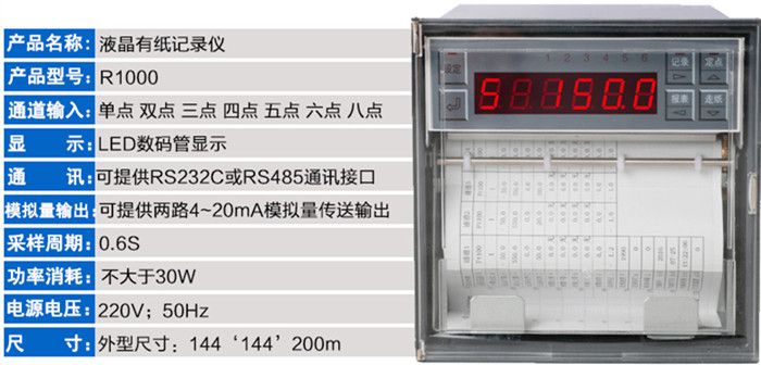 LK-R1000有紙記錄儀8路萬(wàn)能輸入液晶顯示有紙記錄儀,可輸入標(biāo)準(zhǔn)電流、標(biāo)準(zhǔn)電壓、熱電偶、熱電阻等多種信號(hào)。具有傳感器配電輸出、繼電器報(bào)警輸出功能;采用高精度熱敏打印機(jī),實(shí)現(xiàn)數(shù)據(jù)、曲線和混合打??;具有高清晰OLED液晶顯示功能;獨(dú)立的紙倉(cāng)設(shè)計(jì),使打印紙安裝方便快捷。